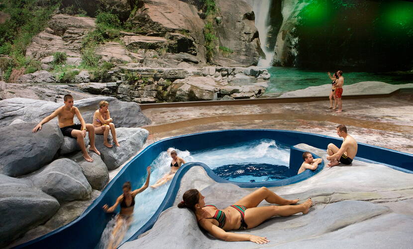 Vom Wellenbad über die Wasser-Vitalwelt bis hin zu sieben verschieden Rutschen mit insgesamt 824 Meter Gesamtlänge!