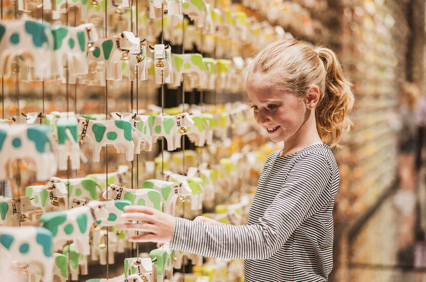 L'univers découverte de Trauffer dans l'Oberland bernois offre une expérience captivante autour de la vache en bois emblématique. Qui a eu l'idée de peindre une vache en bois sculptée avec des taches rouges? Comment est-elle devenue si populaire dans le monde entier? Que signifient «fait main» et «durable»? Ces questions, et bien d'autres, trouvent réponse lors du parcours découverte, à la fois analogique et numérique. Et vous pouvez également participer activement: sculptez votre propre vache en bois (à partir de 12 ans) ou ou t'entraîner à peindre des vaches. Les fans du musicien Trauffer ne seront pas en reste.