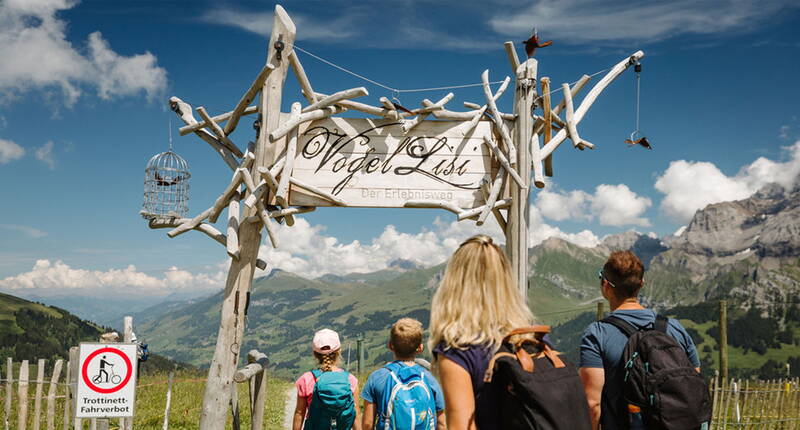Randonner sur le circuit d'altitude de Gryden entre cratères et panorama, parcourir la biodiversité colorée sur le sentier des fleurs alpines Betelberg ou le chemin des fleurs au VogellisiBerg découvrir de manière ludique la construction interactive des marmottes sur le sentier des marmottes, accompagner le Vogellisi et Karl-Joseph sur le sentier thématique VogellisiBerg, dévaler à toute allure le territoire des trottinettes unique au monde sur le VogellisiBerg ou se promener sur le sentier panoramique du Chuenisbärgli au Sillerenbühl.